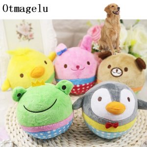 Otmagelu Solid Dog Ball Toys Puppy Cat Plush Pet Interactive Toys For Small Dog Bite Resistant Cute Animal Designs Chew Squeaker